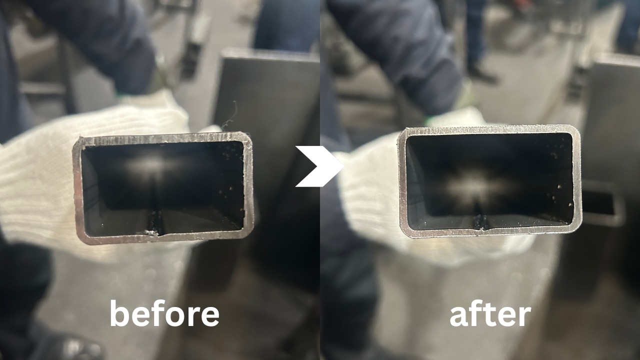 ここでは、バリ取り機(UNI-DEBURRING)を使用してパイプ20,000本のバリ取り作業(両側)を行った場合の一例をご紹介します。