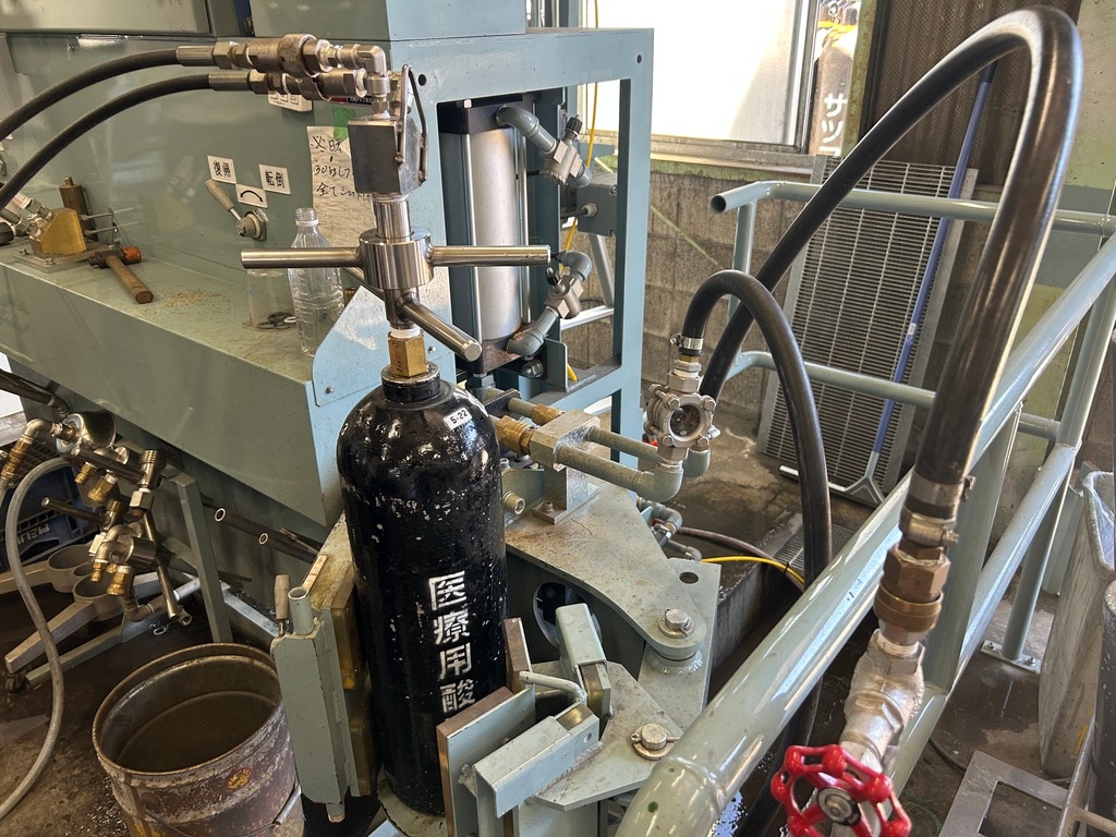また、装置の省エネ効果も見逃せません。既設の水套式耐圧試験装置を非水槽式耐圧試験装置に更新したことで、耐圧試験に必要な水量を大幅に抑えることができました。その結果、水道代が毎月約2万円節約でき、ランニングコストの低減に繋がりました。過剰な水の使用を抑えることにもつながり、より効率的な運用を実現されています。
