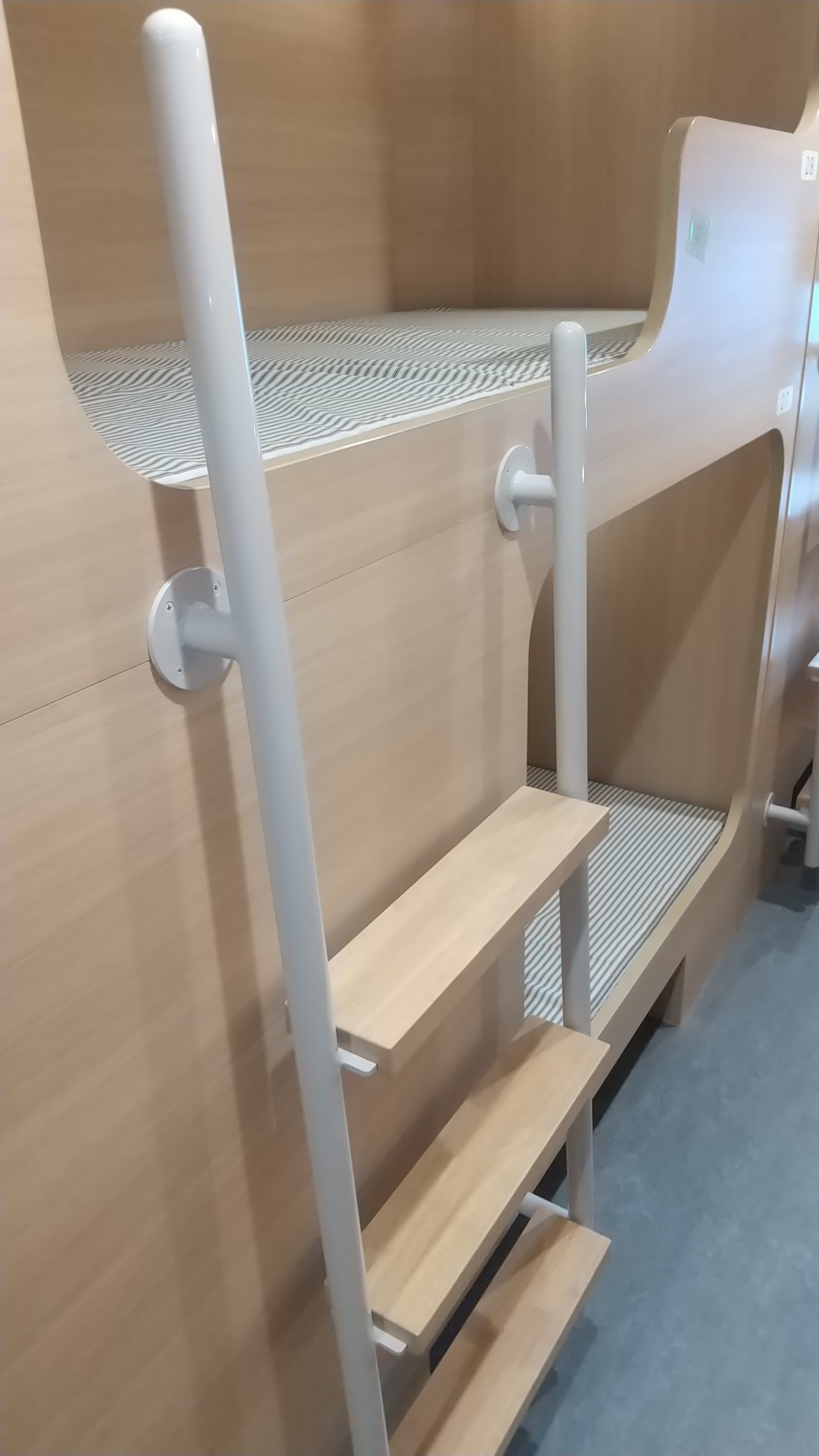 建造船向けベット手摺(左)、建造船向け電話BOX(右)