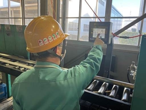 Previously, dimensions were checked before and after cutting using a measuring tape attached to the roller stand, but after the introduction of the system, it is now only necessary to check after cutting. Simply input the set value into the touch panel and start, and the fixed size stopper will automatically move, which has improved the work efficiency of cutting process by approximately 50%.