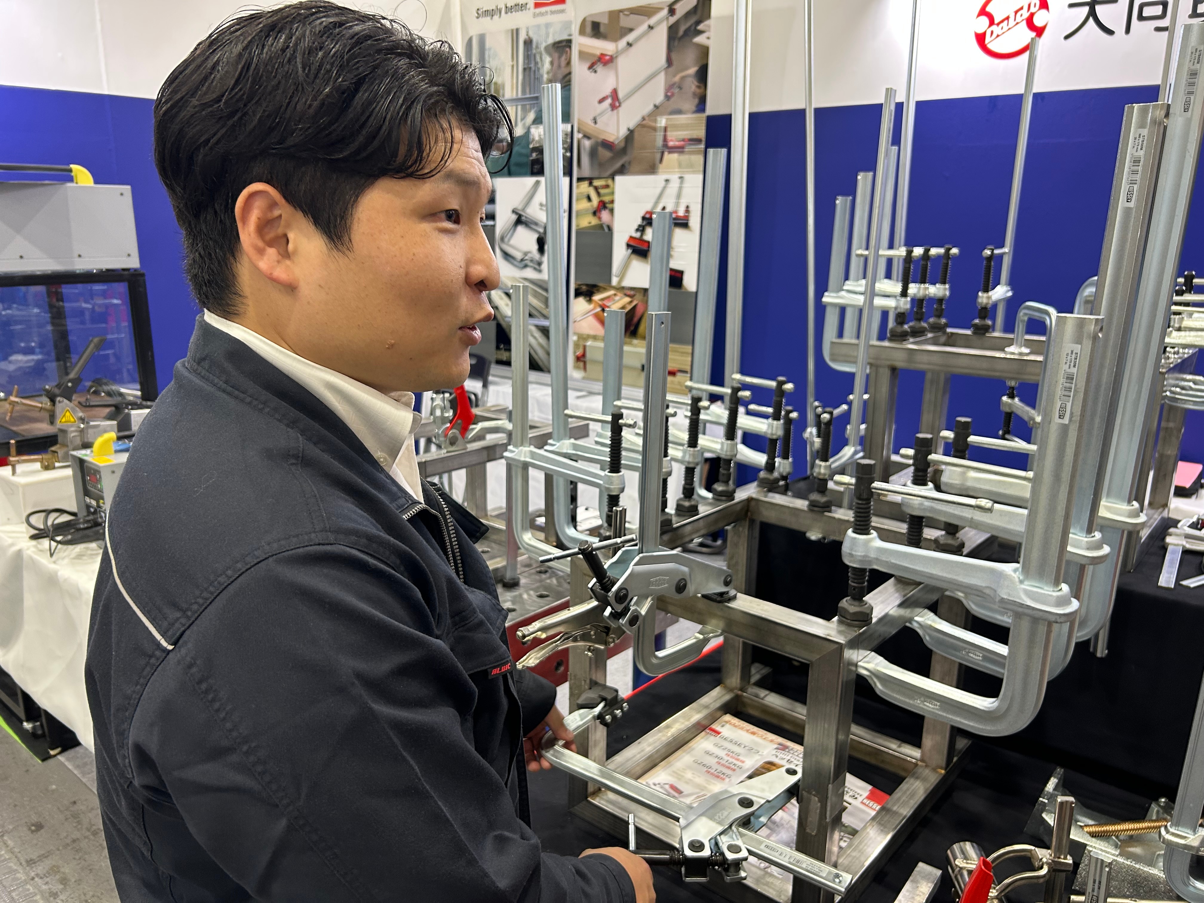 I am currently in the Industrial Equipment Division, where I sell industrial equipment such as welding machines, Bessey clamps, cutting machines, and pipe processing machines. These machines are used to weld, fix, cutting, and bend iron, stainless steel, and aluminum handled in metal working, and the processed iron becomes parts for machines that manufacture things that you usually see around town, such as cars and handrails. The main sales methods are visiting customers and exhibitions. When visiting, we demonstrate how to use the products, promote and promote each product, and are present at the time of delivery to explain how to use them. Exhibitions are held all over the country, including Osaka, Kagawa, Okayama, Kyoto, Ishikawa, and Toyama, and we participate in about six exhibitions a year. We promote the products on display to customers who visit, and if they like them, we sell them on the spot.