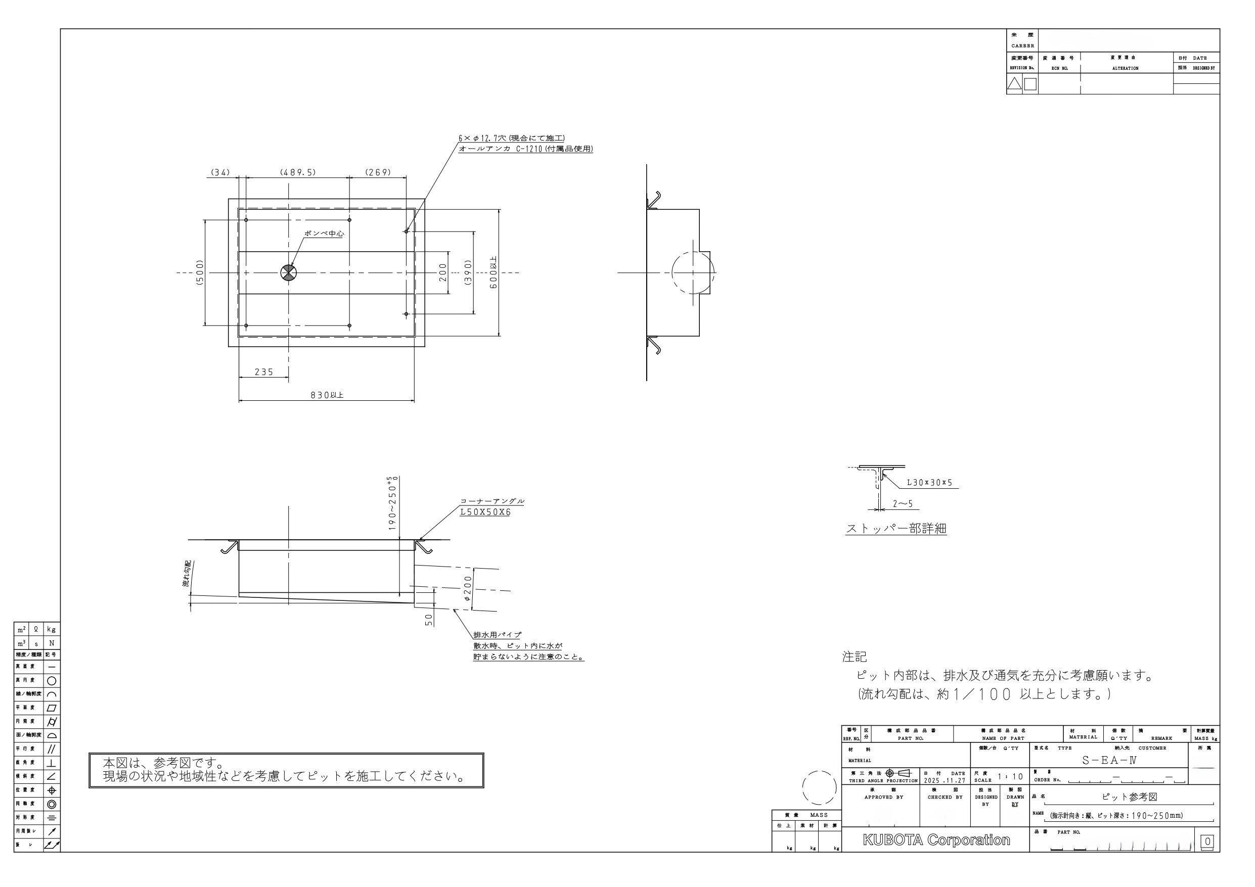 既設のピットとピット参考図をご比較ください。